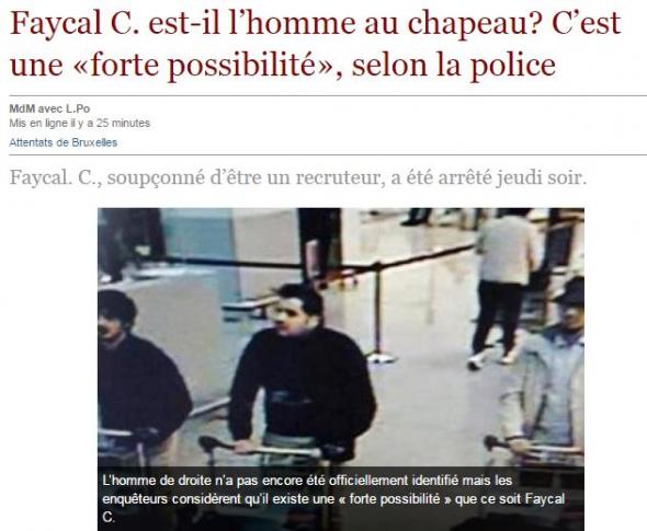 Συγκεκριμένα, ονομάζεται Fayçal C, μένει στις Βρυξέλλες και εργάζεται ως ανεξάρτητος δημοσιογράφος. Όπως αναφέρει η εφημερίδα οι αρχές θεωρούν πως είναι πολύ πιθανό να πρόκειται για τον άντρα που με το καπέλο στη φωτογραφία από την κάμερα ασφαλείας του αεροδρομίου.
