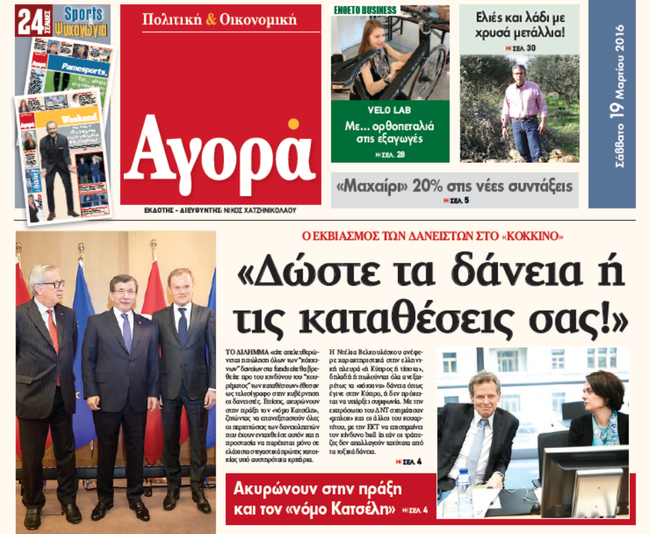 Η «Αγορά» κυκλοφορεί το Σάββατο με τίτλο: «Δώστε τα δάνεια ή τις καταθέσεις σας»