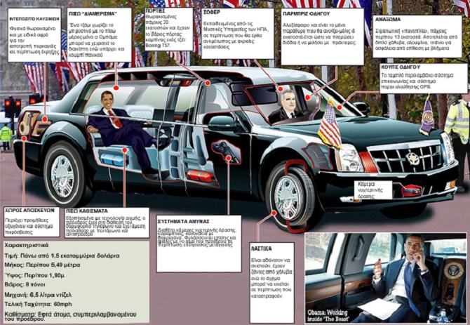 Ο πλανητάρχης κυκλοφορεί με ένα τέρας! Ο Ομπάμα κυκλοφορεί με το απίστευτα θωρακισμένο όχημά του που δε φέρει τυχαία το τίτλο «The beast», δηλαδή το «τέρας», μιας και καμία βόμβα -σχεδόν-, δεν μπορεί να το τσαλακώσει.