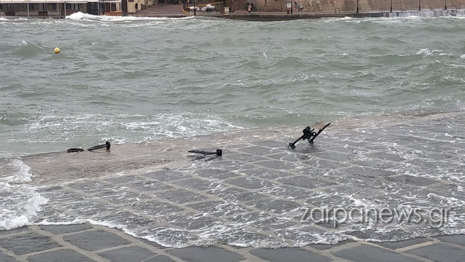 Ζημιές προκλήθηκαν στο Παλιό Λιμάνι των Χανίων καθώς τα νερά «φούσκωσαν» και τα αγριεμένα κύματα ξήλωσαν παγκάκια και πλάκες από το πλακόστρωτο. Την ίδια ώρα, έσπασαν και μέρος από ιστιοφόρο σκάφος που ήταν δεμένο Λιμάνι.