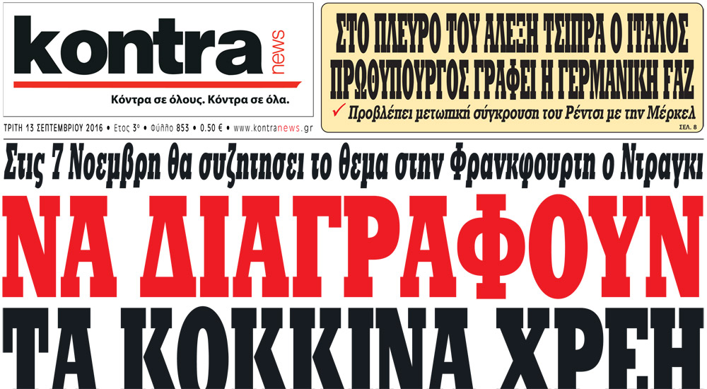 ΣΤΙΣ 7 ΝΟΕΜΒΡΗ ΘΑ ΣΥΖΗΤΗΣΕΙ ΤΟ ΘΕΜΑ ΣΤΗΝ ΦΡΑΝΚΦΟΥΡΤΗ Ο ΝΤΡΑΓΚΙ – ΕΝΑΣ-ΕΝΑΣ ΤΟ ΚΑΤΑΛΑΒΑΙΝΟΥΝ ΟΛΟΙ ΟΤΙ ΤΑ ΧΡΕΗ ΜΑΣ ΕΙΝΑΙ ΔΥΣΒΑΣΤΑΧΤΑ, ΕΠΑΧΘΗ ΚΑΙ ΠΑΡΑΝΟΜΑ