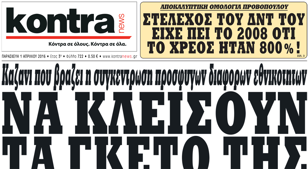 Η συγκατοίκηση ανάμεσα σε διαφορετικές εθνότητες και θρησκευτικά δόγματα είναι αδύνατη και εγκυμονεί τεράστιους κινδύνους. Δεν μπορούν σε καμιά περίπτωση να βρίσκονται στον ίδιο χώρο οι άγριοι Αφγανοί, που δε διστάζουν να βγάλουν μαχαίρια και να απειλούν με βιασμούς, με τους Σύρους πρόσφυγες που βρίσκονται στην Ελλάδα με τις γυναίκες τους και τα μικρά παιδιά τους. Είναι ζήτημα χρόνου το ξέσπασμα αιματηρών επεισοδίων τόσο στον Πειραιά, όσο και στην Ειδομένη. Γιατί μπορεί διάφορες ύποπτες ΜΚΟ να επιδιώκουν να συντηρήσουν το γκέτο της Ειδομένης, γιατί έχουν αναλάβει εργολαβικά να στήσουν προβοκάτσιες που θα βάλουν την Ελλάδα σε περιπέτειες με τις γειτονικές χώρες αλλά το επίσημο κράτος δεν μπορεί να αφήσει την κατάσταση ανεξέλεγκτη.
