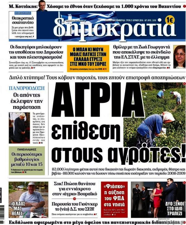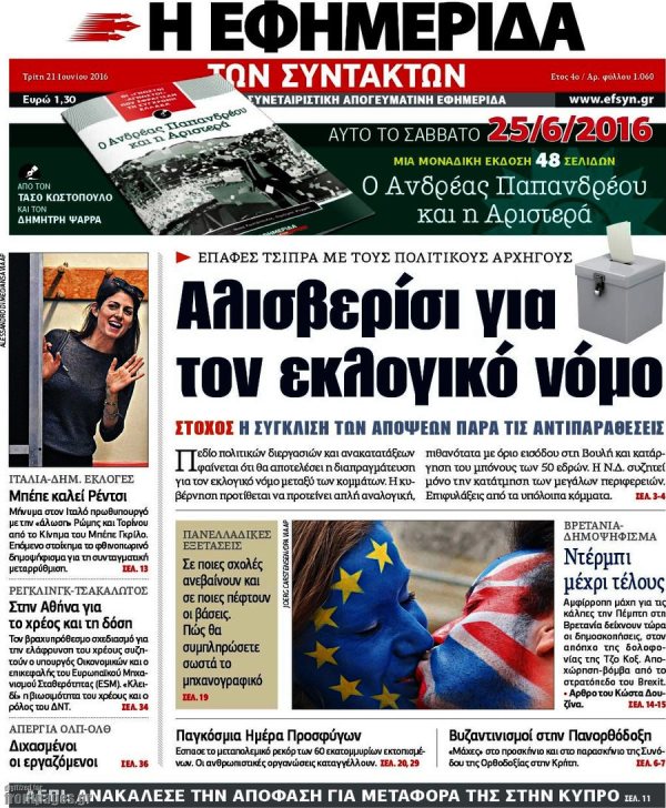 Τα πρωτοσέλιδα των πολιτικών εφημερίδων γράφουν: