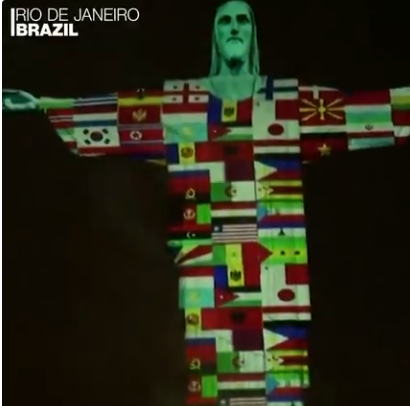Σε αυτή τη δύσκολη και πρωτόγνωρη συγκυρία για όλο τον πλανήτη το δημοφιλές άγαλμα του Ιησού στο Ρίο της Βραζιλίας, φωτίστηκε το βράδυ της Τετάρτης (18/03) με τα χρώματα των σημαιών των χωρών που πλήττονται από τον ιό, σε μια ελάχιστη ένδειξη συμπαράστασης και αλληλεγγύης στους δοκιμαζόμενους λαούς του πλανήτη. Υπήρχε και η σημαία της Ελλάδας.