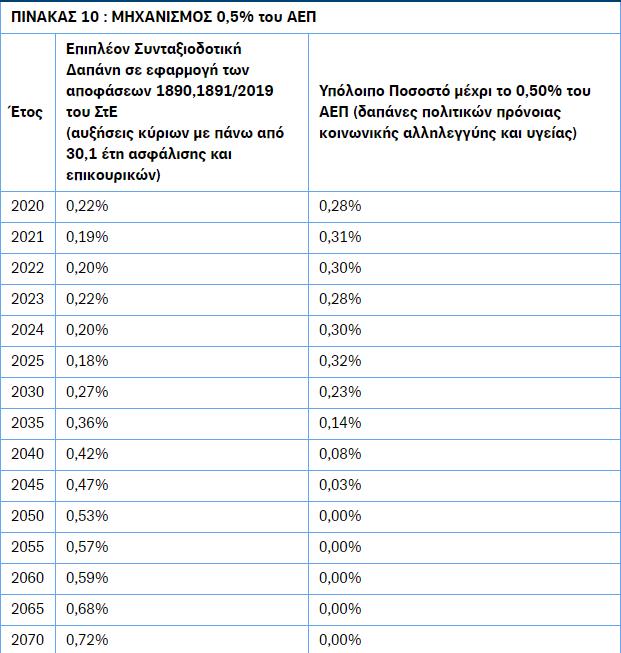 Υπενθυμίζεται πως από αυτό το κονδύλι χρηματοδοτούνται οι αυξήσεις σε κύριες (ποσοστά αναπλήρωσης από 30,1 έτη ασφάλισης και άνω) και επικουρικές που απορρέουν από τις αποφάσεις του ΣτΕ και κατά δεύτερον δαπάνες κοινωνικής πολιτικής που θα πρέπει να προσδιοριστούν σε δεύτερο χρόνο με ΚΥΑ. Το κείμενο της δημόσιας διαβούλευσης αναφερόταν σε «δαπάνη πολιτικών κοινωνικής ασφάλισης, πρόνοιας και κοινωνικής αλληλεγγύης και υγείας», ενώ στο τελικό κείμενο αφαιρέθηκε ο όρος «κοινωνικής ασφάλισης» και πλέον γίνεται αναφορά μόνο σε «δαπάνη πρόνοιας και κοινωνικής αλληλεγγύης και υγείας». Μένει να αποδειχθεί, σχολιάζουν ειδικοί, αν αυτή η αλλαγή θα έχει ουσιαστικό αντίκτυπο στην κατεύθυνση των εν λόγω δαπανών. Υπενθυμίζεται πως στο προσχέδιο που δεν έφτασε σε διαβούλευση γινόταν λόγος για μια εφάπαξ παροχή η οποία θα δινόταν κάθε Χριστούγεννα στους συνταξιούχους.
