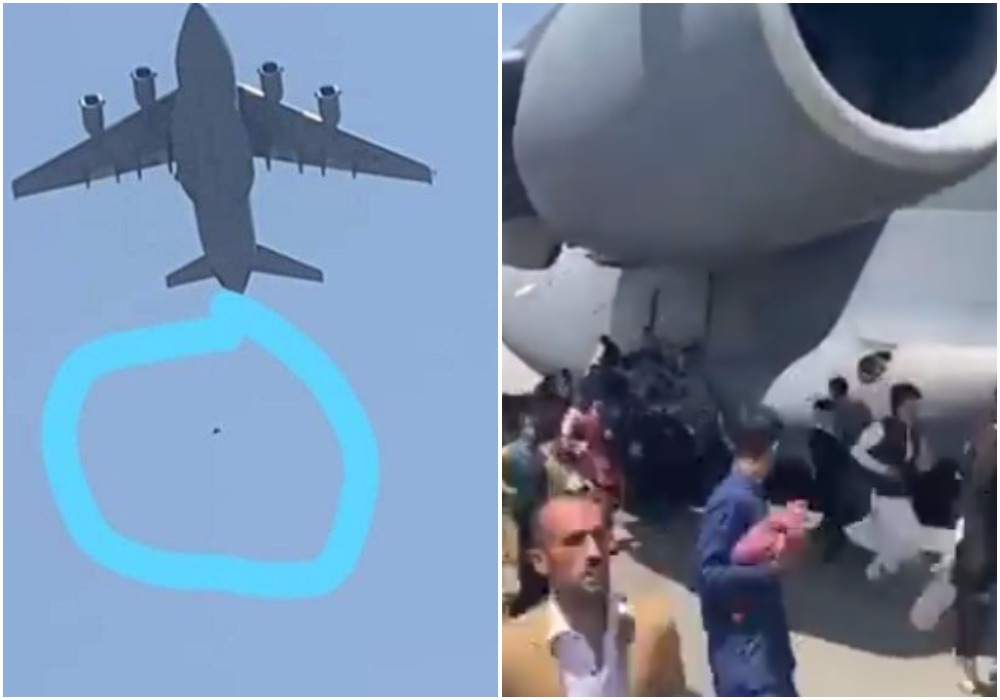 Νωρίτερα τη Δευτέρα, 16 Αυγούστου, κυκλοφόρησε από το πρακτορείο Asvaka News βίντεο που δείχνει Αφγανούς σε απόγνωση, να πέφτουν από αεροπλάνο που απογειώνεται.