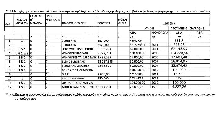 Επίσης, είχε μετοχές και ομόλογα μαζί με τη σύζυγό του σε τράπεζες και εταιρείες.