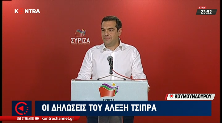 Ο ελληνικός λαός υπήρξε πάντοτε το στήριγμά μας. Απευθυνόμαστε, λοιπόν, για άλλη μία φορά, σε αυτό το στήριγμα. Στο μοναδικό μας στήριγμα. Σε όλες τις Ελληνίδες και σε όλους τους Έλληνες. Απευθύνομαι σε αυτούς, με ειλικρίνεια και πάλι, και ζητάμε τη δική τους εντολή. Την καθαρή εντολή.