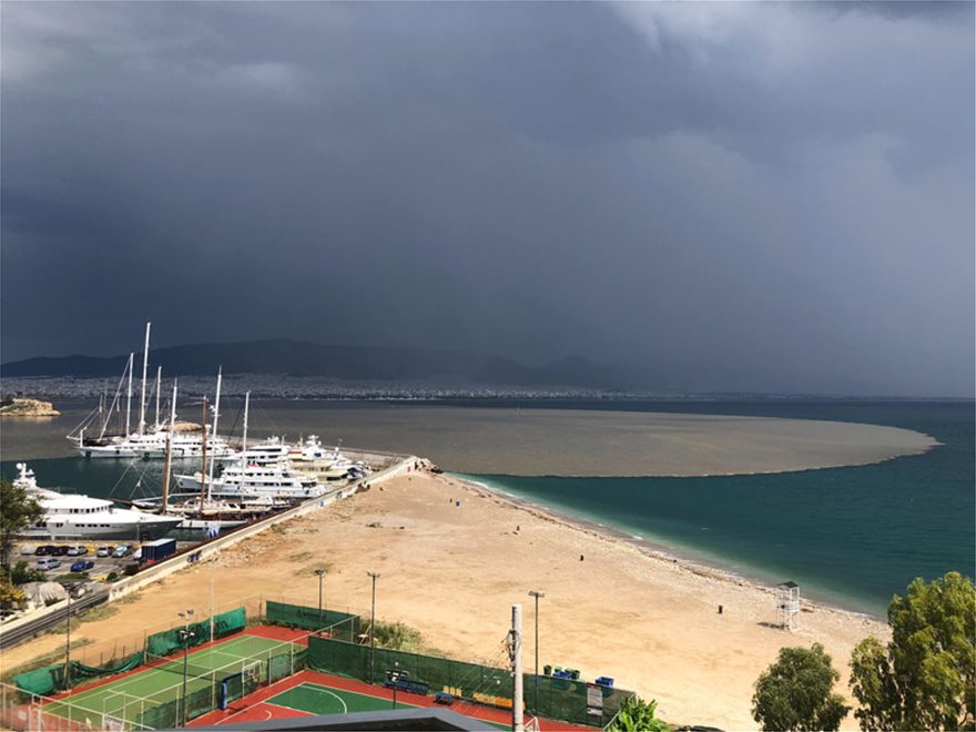 Στη θαλάσσια περιοχή της Φρεαττύδας στον Πειραιά σχηματίστηκε ένας τεράστιος κύκλος λάσπης από χώματα που μεταφέρθηκαν από τον Κηφισό.