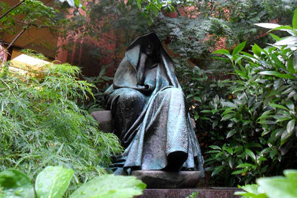 Λίγα τετράγωνα μακριά από τις σεβάσμιες φιγούρες σε μία ήσυχη γωνία μίας αυλής της πόλης υπάρχει ένα απόκοσμο άγαλμα που δεν το λατρεύουν. Το αντικείμενο έχει ύψος 1,65 μ. και είναι μπρούτζινο.