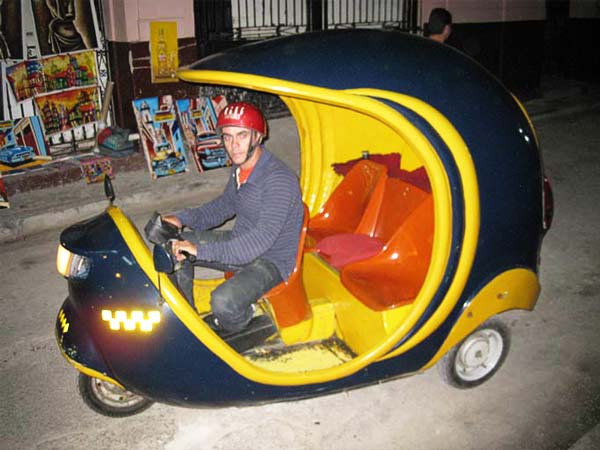 Ουάου! Τι δημιουργικό πνεύμα, τι χρώματα, τι σχεδιασμός! Στο Περού “το’χουν” οι άνθρωποι και είπαν να πρωτοτυπήσουν λίγο με αυτό το είδος των ταξί. Άνετο, ευάερο και ευήλιο υπόσχεται μια μοναδική βόλτα στους δρόμους της πόλης.