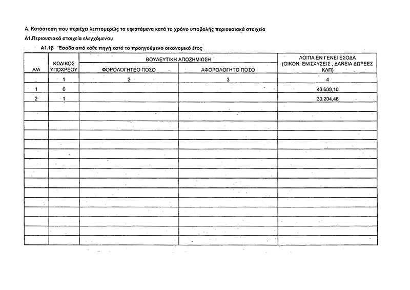 Η κυρία Φώφη Γεννηματά το 2012 ήταν εξωκοινοβουλευτική υπουργός Εθνικής Άμυνας και το σύνολο των εσόδων ανήλθαν σε 40.600 ευρώ, ενώ της συζύγου της σε 30.204 ευρώ.