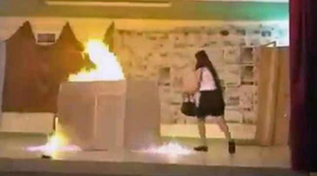 Ατύχημα σημειώθηκε σε μια σχολική θεατρική παράσταση, όταν ένα μέρος του σκηνικού τυλίχθηκε στις φλόγες, τραυματίζοντας δύο μαθήτριες.