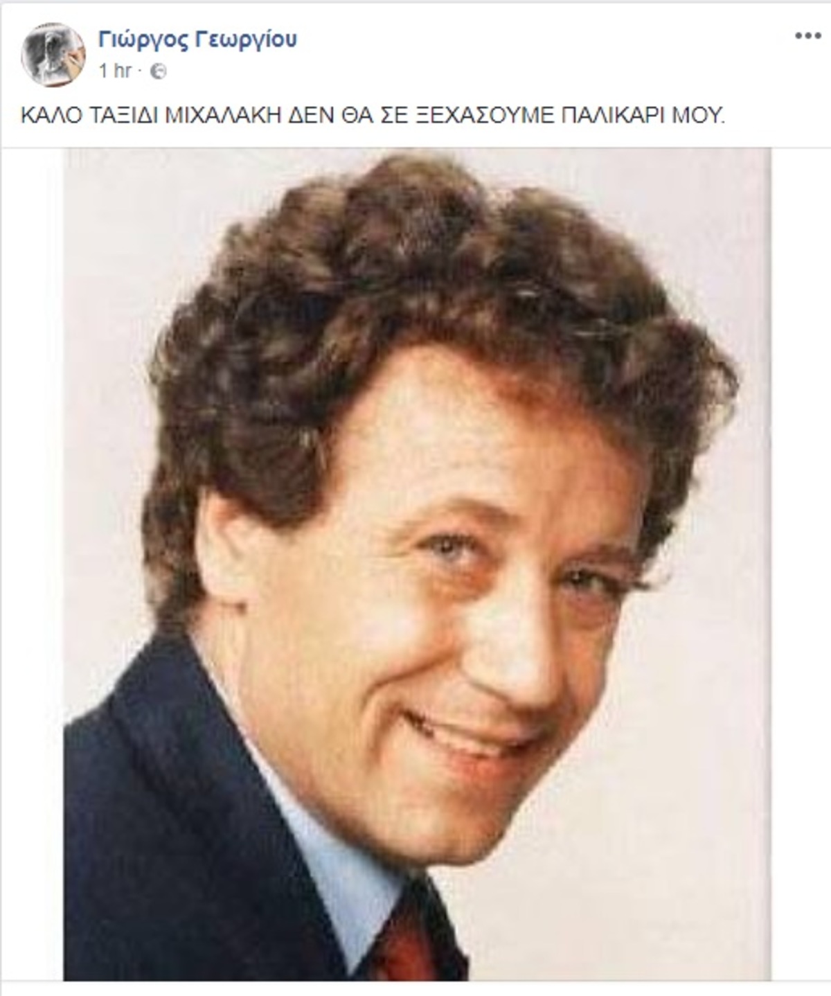 Πέθανε ο ηθοποιός Μιχάλης Δεσύλλας, σκορπώντας θλίψη στον καλλιτεχνικό χώρο. Η είδηση του θανάτου του έγινε γνωστή μέσα από τον λογαριασμό του ηθοποιού Γιώργου Γεωργίου στο Facebook. Ο ίδιος ανέβασε μια φωτογραφία του Μιχάλη Δεσύλλα και έγραψε: «Καλό ταξίδι Μιχαλάκη. Δεν θα σε ξεχάσουμε παλικάρι μου». Ο Γιώργος Γεωργίου αναφέρει πως η κηδεία του ηθοποιού θα γίνει την Παρασκευή.