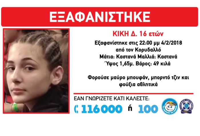 Ειδικότερα, η περιπέτεια της 16χρονης ετών, έληξε το απόγευμα δίνοντας έτσι τέλος στην αγωνία των δικών της ανθρώπων που την αναζητούσαν.