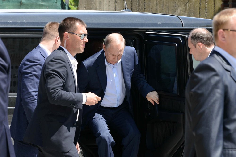 Με θωρακισμένο τζιπ, ο επικεφαλής του ρωσικού κράτους μετέβη προς τις Καρυές, όπου τον ανέμεναν αξιωματούχοι της Αθωνικής Πολιτείας.