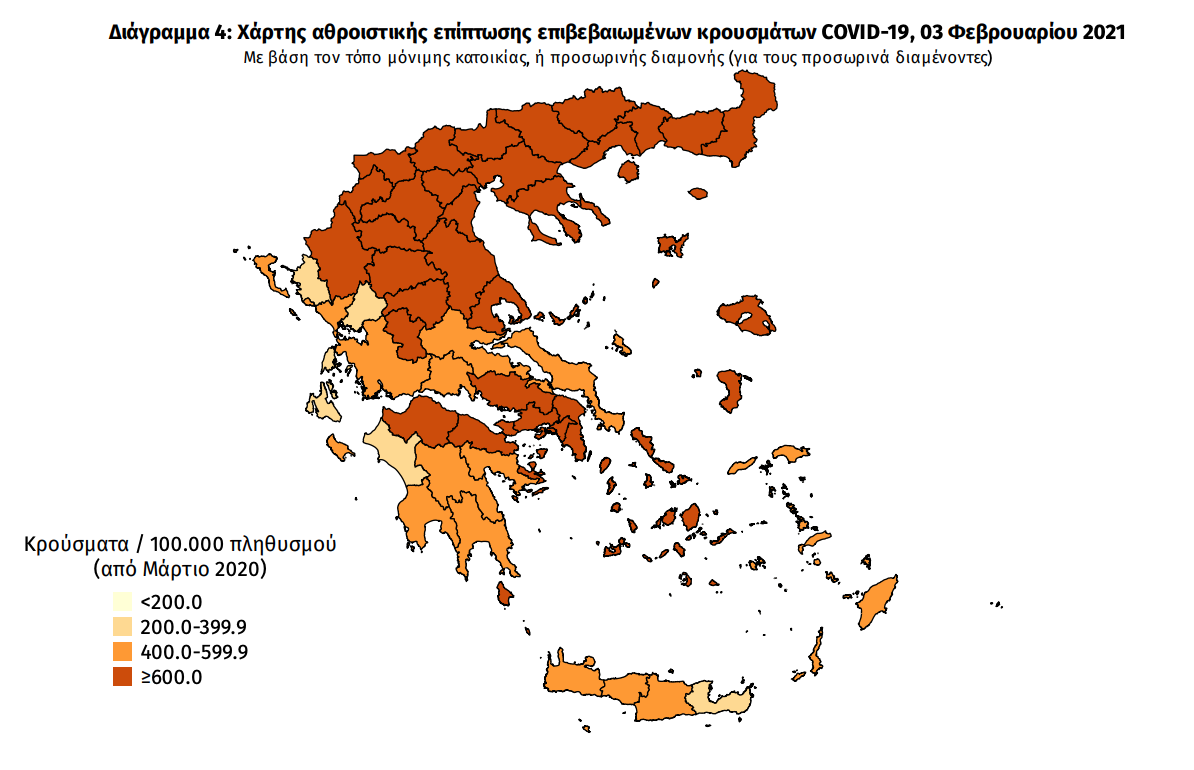 Ο ΕΟΔΥ ανακοίνωσε 1151 νέα κρούσματα κορωνοϊού στη χώρα μας σήμερα Τετάρτη 03/02.