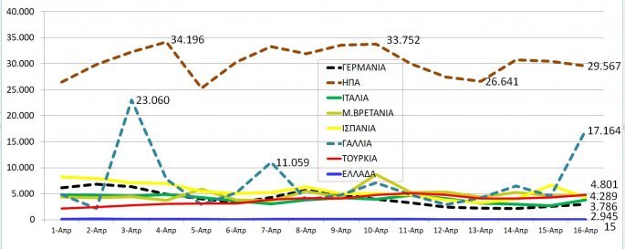 ΗΠΑ, Γαλλία και Μ.Βρετανία πλήττονται περισσότερο από την επιδημία μετά τα στοιχεία των 16 ημερών του Απριλίου