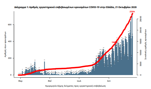 Ο ΕΟΔΥ ανακοίνωσε 865 νέα κρούσματα κορωνοϊού στη χώρα μας την Τετάρτη 21/10.