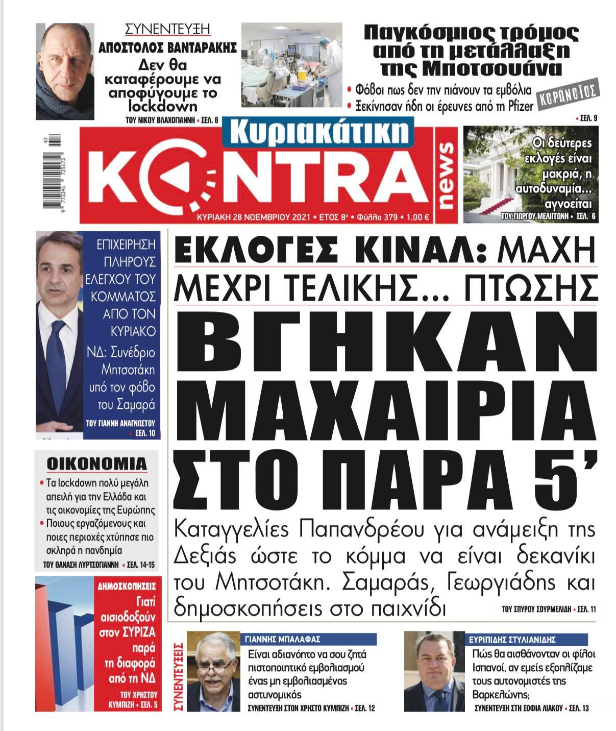 Διαβάστε αύριο στην Κυριακάτικη Kontra News που κυκλοφορεί: