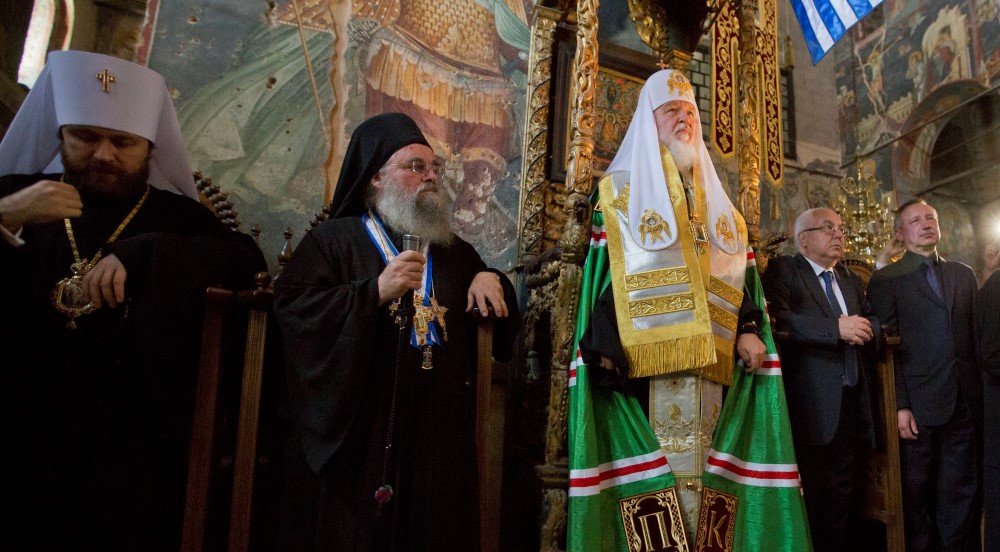 Ο Πατριάρχης Μόσχας Κύριλλος εξέφρασε το σεβασμό του στον Οικουμενικό Πατριάρχη Βαρθολομαίο και τους εκπροσώπους των 20 μοναστηριών του Αγίου Όρους και είπε ότι ως εκπρόσωπος του σύγχρονου ρωσικού μοναχισμού ήρθε να υποβάλει τα σέβη του στον αγιορείτικο μοναχισμό.