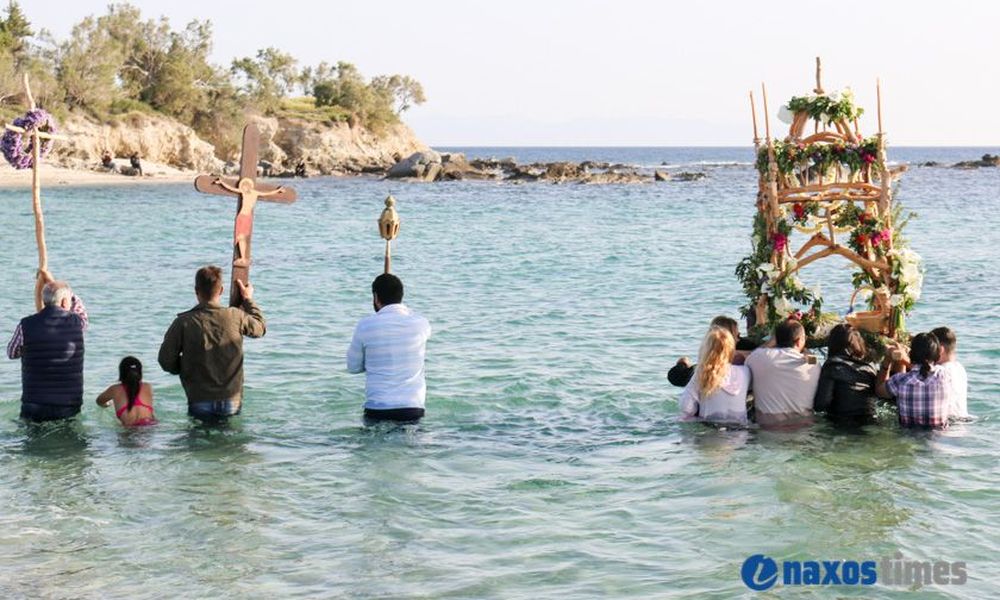 Με δέος και συγκίνηση εκατοντάδες πιστοί παρακολούθησαν οι πιστοί την ακολουθία της Μεγάλης Παρασκευής και ακολούθησαν την περιφορά του Επιταφίου μέσα στη θάλασσα στο Καστράκι της Νάξου.