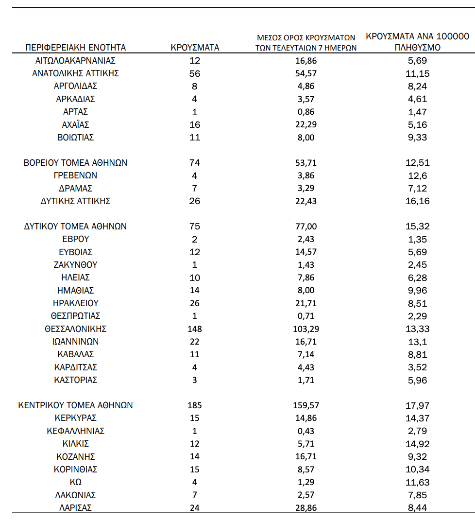 ΚΕΝΤΡΙΚΟΣ ΤΟΜΕΑΣ ΑΘΗΝΩΝ: 185 κρούσματα
