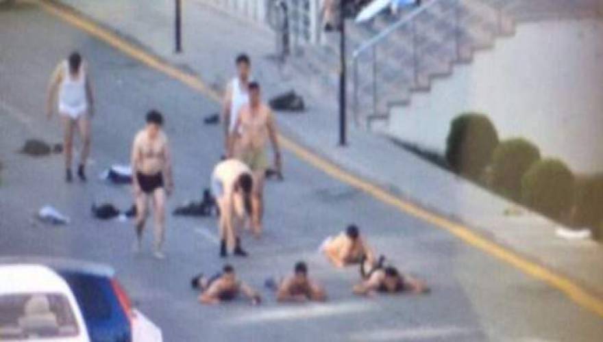 Πρόκειται για την παράδοση πραξικοπηματιών στην Άγκυρα, αφού έχουν βγάλει τις στολές τους. Γυμνοί, άλλοι με τα χέρια ψηλά και άλλοι σερνάμενοι στο δρόμο παραδίδονται στην αστυνομία.
