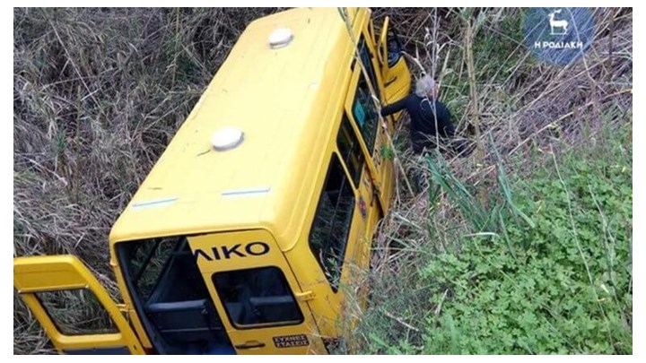 Παραλίγο τραγωδία στη Ρόδο, όταν σχολικό λεωφορείο έπειτα από τρελή πορεία έκανε βουτιά σε ρέμα.
