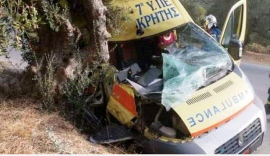 Σοβαρό τροχαίο στην Κρήτη: Ασθενοφόρο προσέκρουσε σε δέντρο