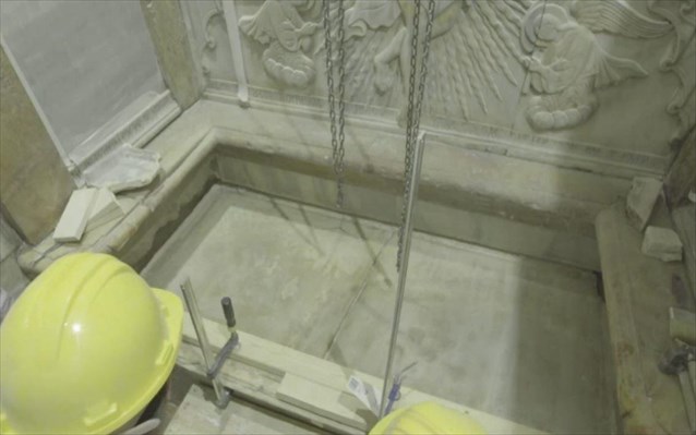 Η επιφάνεια της ταφικής πλάκας του Χριστού ήρθε στο φως κατά τη διάρκεια των εργασιών αποκατάστασης που πραγματοποιούνται στον χώρο.