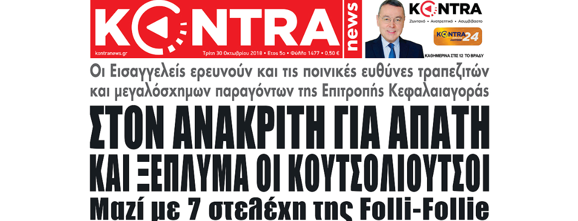 Μαζί τους καλούνται για απολογία ως ύποπτοι τέλεσης των ίδιων αδικημάτων και επτά κορυφαία στελέχη της Folli Follie. Δικαστικές πηγές αποκάλυψαν στην KONTRA NEWS ότι το υλικό που βρίσκεται στα χέρια της Δικαιοσύνης τεκμηριώνει μια τεράστια απάτη με πρωταγωνιστές την οικογένεια Κουτσολιούτσου.