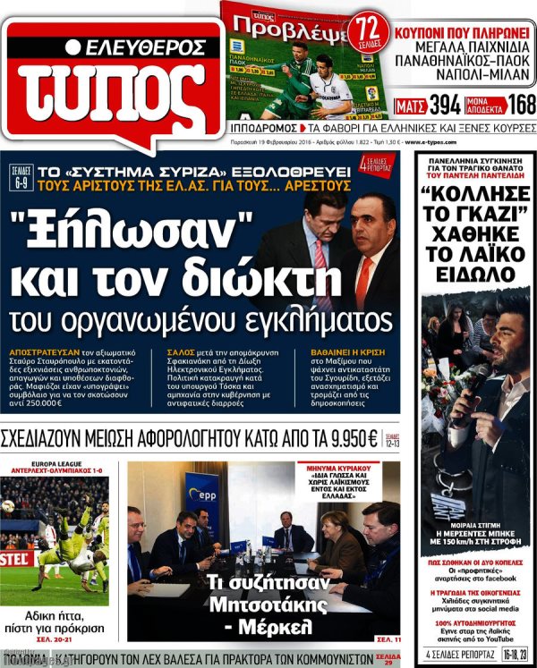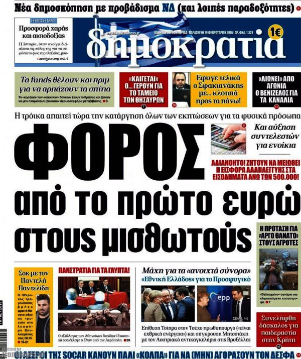 Τα πρωτοσέλιδα των πολιτικών εφημερίδων γράφουν: