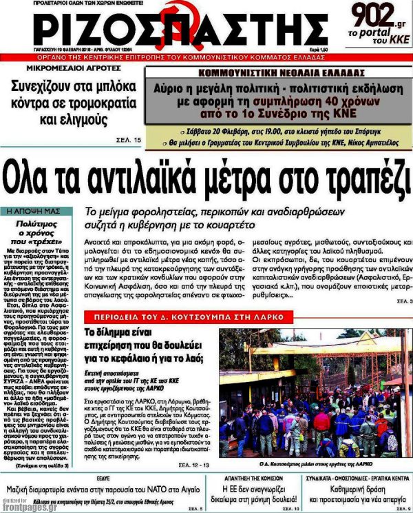 Τα πρωτοσέλιδα των πολιτικών εφημερίδων