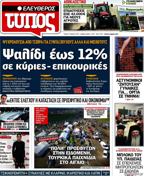 Τα πρωτοσέλιδα των πολιτικών εφημερίδων γράφουν: