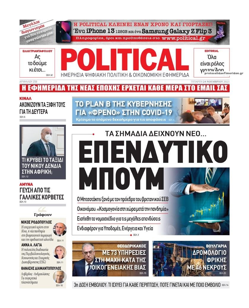 Τα πρωτοσέλιδα των πολιτικών εφημερίδων