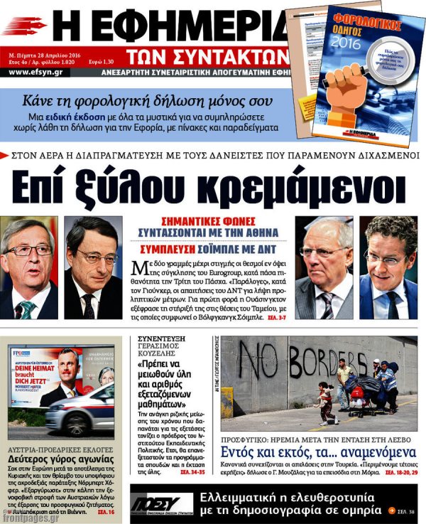 Τα πρωτοσέλιδα των πολιτικών εφημερίδων γράφουν: