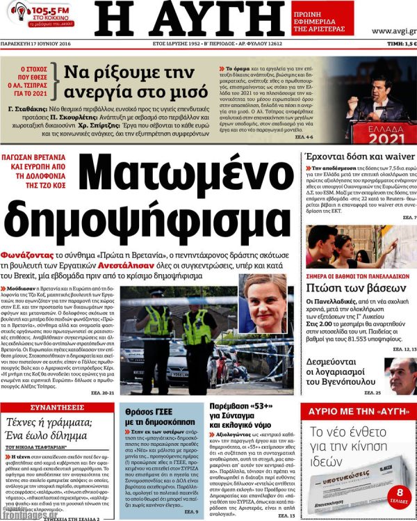 Τα πρωτοσέλιδα των πολιτικών εφημερίδων γράφουν: