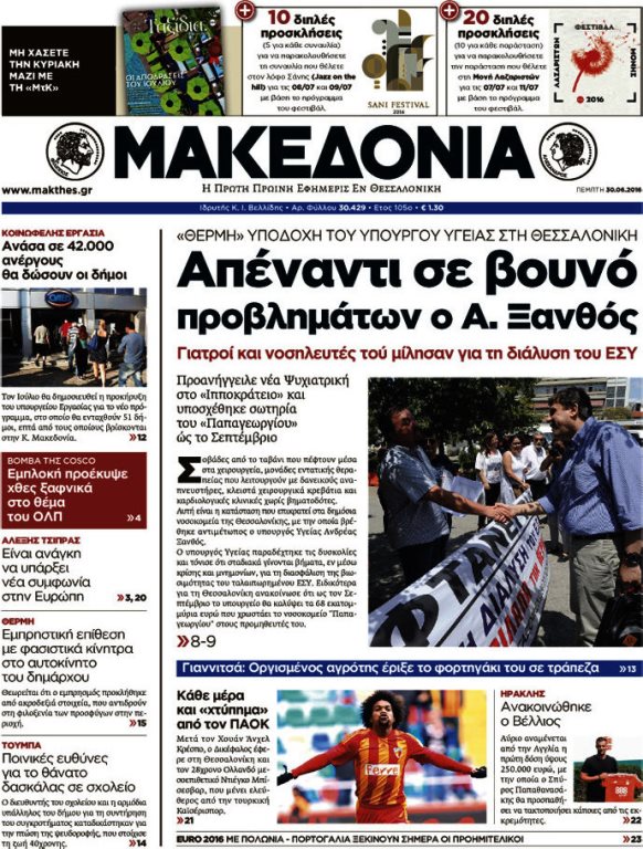 Τα πρωτοσέλιδα των πολιτικών εφημερίδων γράφουν: