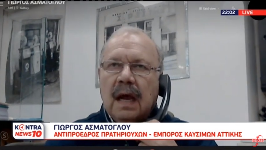 Ο πρόεδρος της Πανελλήνιας Ομοσπονδίας Πρατηριούχων – Εμπόρων Καυσίμων (ΠΟΠΕΚ), Γιώργος Ασμάτογλου στο Kontra News 10 με τον Γιώργο Μελιγγώνη