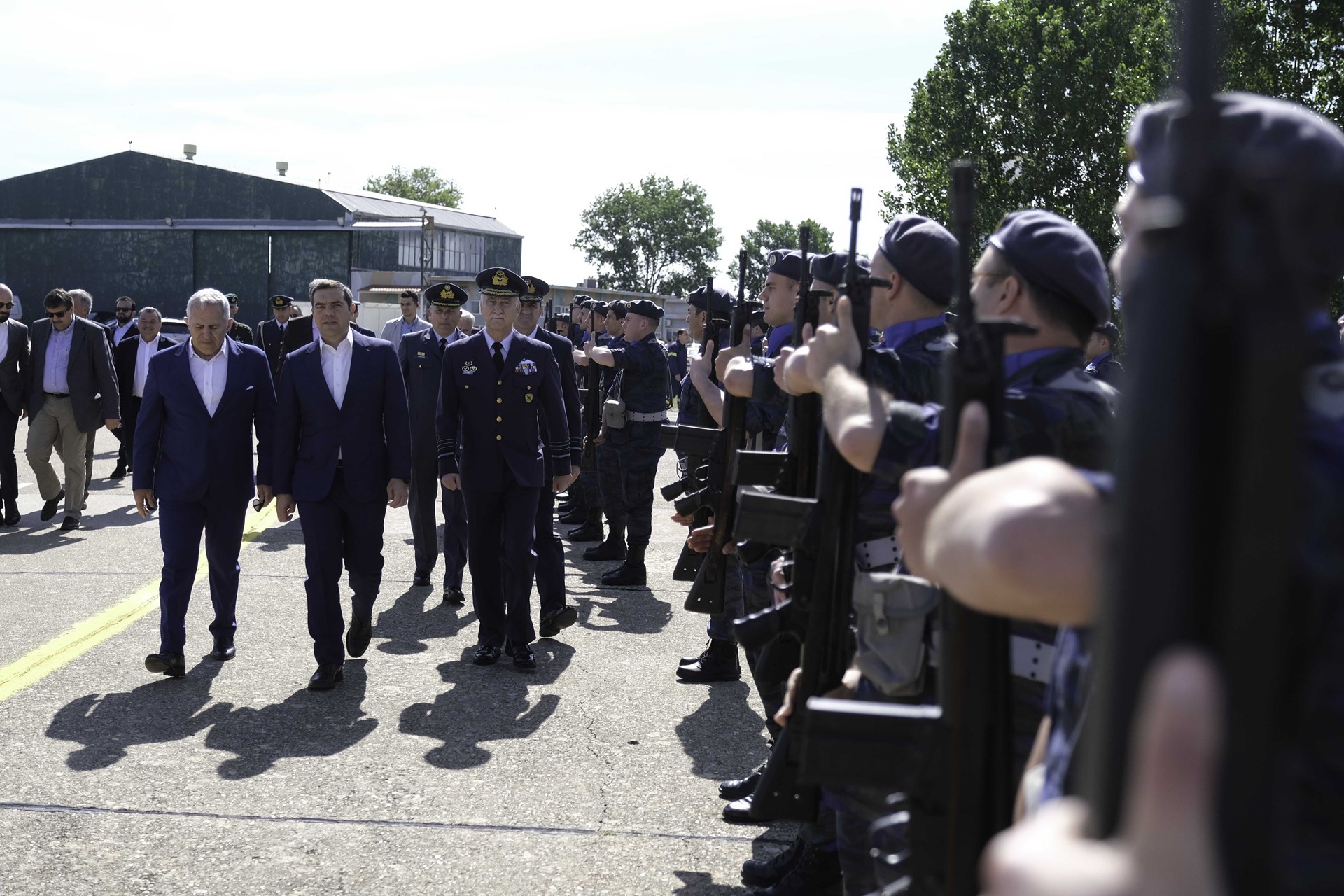 Ο πρωθυπουργός έφτασε στο αεροδρόμιο συνοδευόμενος από τη σύζυγό του Μπ. Μπαζιάνα και ενημερώθηκε για τις δυνατότητες που προσφέρει το ελικόπτερο που βρίσκεται στη δύναμη της βάσης.