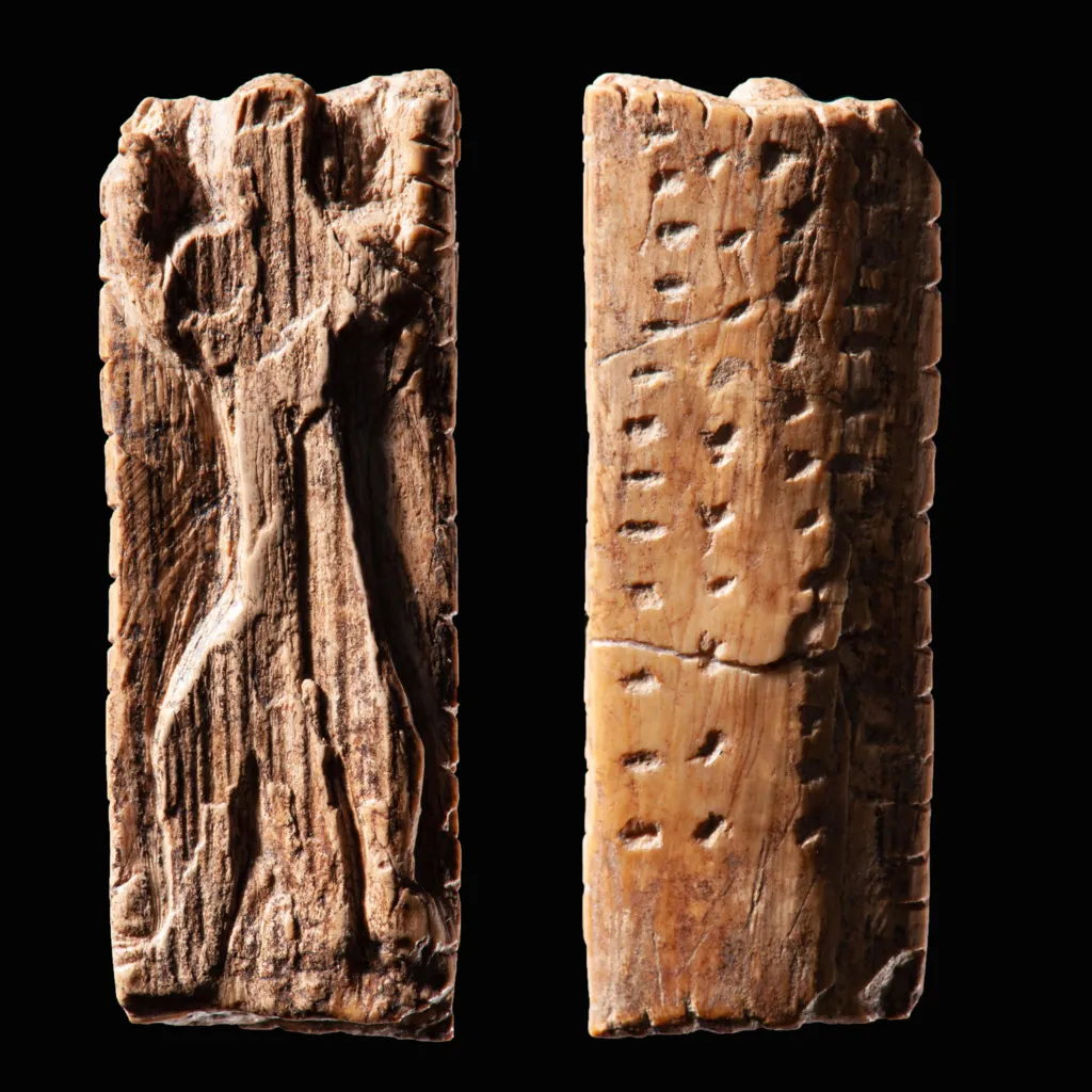 Σε ένα μικρό γλυπτό μαμούθ από χαυλιόδοντα, οι ερευνητές ανέλυσαν σειρές από προσεκτικά χαραγμένους σταυρούς και κουκκίδες. Σε ένα ακόμη αντικείμενο, γνωστό ως «adorant», από το σπήλαιο Geißenklösterle στην κοιλάδα Achtal, εντοπίστηκαν σειρές από κουκκίδες και εγκοπές πάνω σε μια πλάκα από ελεφαντόδοντο που απεικονίζει ένα υβριδικό πλάσμα ανθρώπου και λιονταριού.