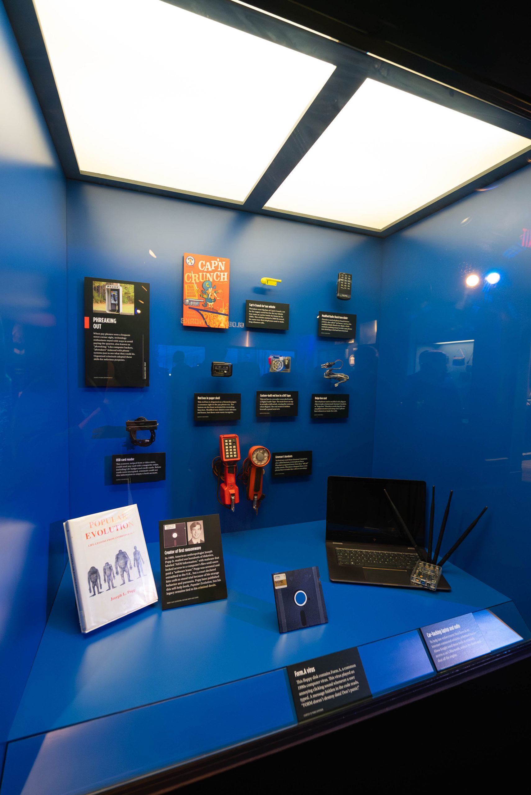 Η έκθεση αφηγείται την εξέλιξη του κυβερνοεγκλήματος μέσα από αντικείμενα-σταθμούς: