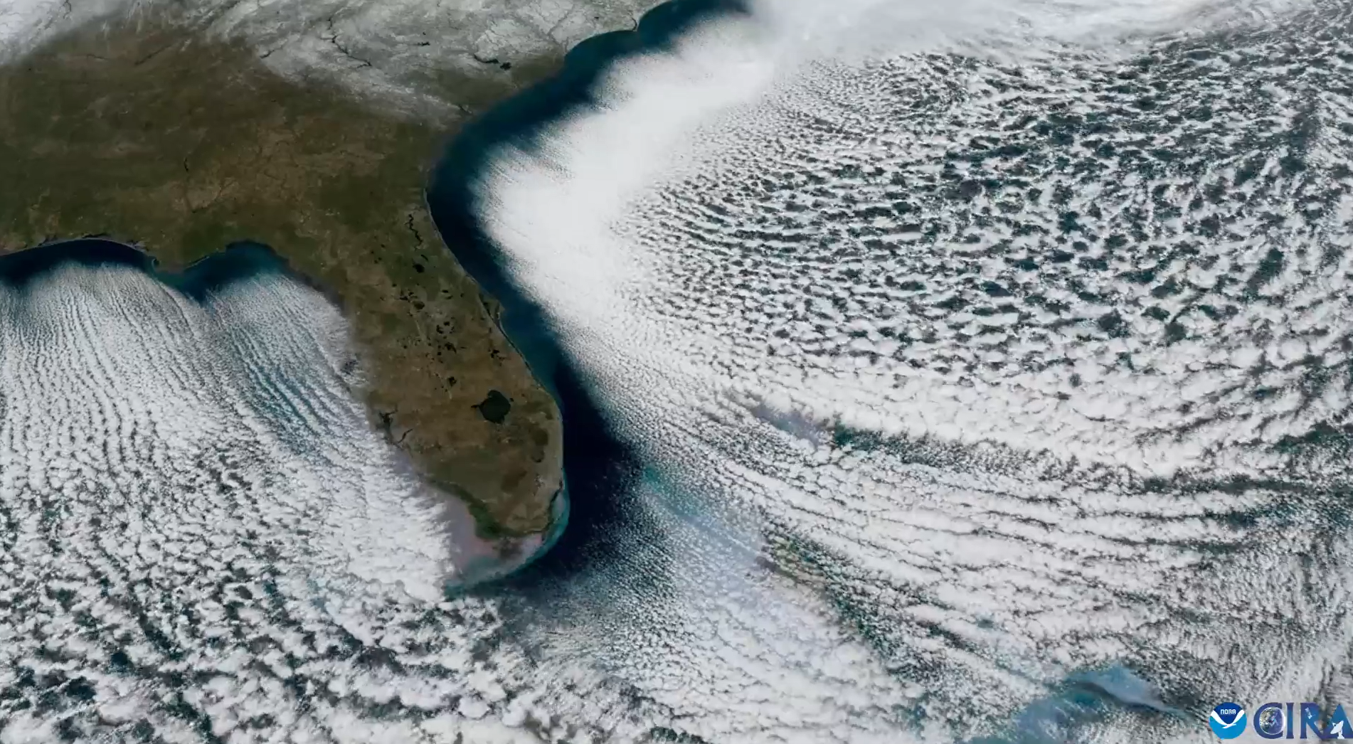 The #ArcticBlast that put much of Florida into a deep freeze also created these mesmerizing #CloudStreets caught by @NOAA‘s #GOESEast.