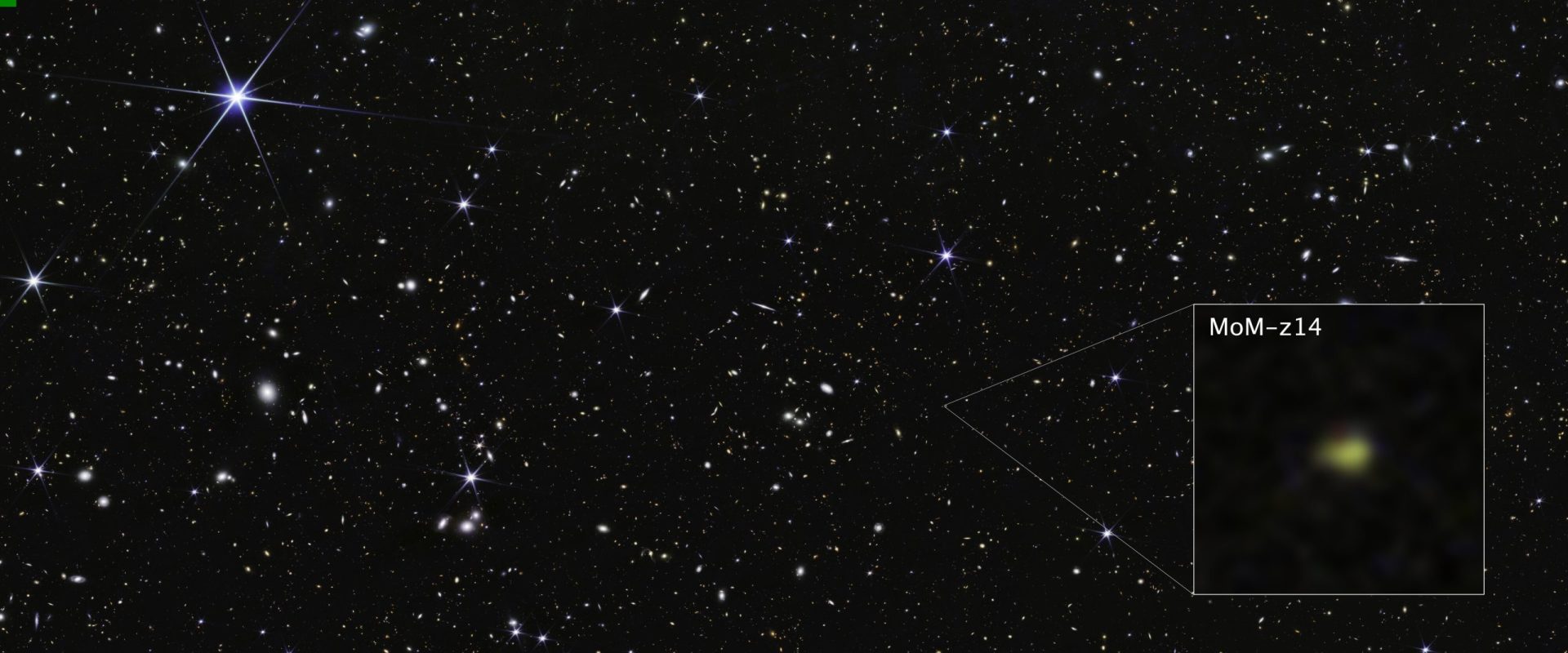 Χρησιμοποιώντας το όργανο NIRSpec (Φασματογράφος Εγγύς Υπέρυθρου) του James Webb, οι αστρονόμοι επιβεβαίωσαν ότι το φως του γαλαξία MoM-z14 ταξιδεύει μέσα στον διαστελλόμενο χώρο, επιμηκυνόμενο και «μετατοπιζόμενο» προς μεγαλύτερα, πιο ερυθρά μήκη κύματος, για περίπου 13,5 από τα εκτιμώμενα 13,8 δισεκατομμύρια χρόνια ύπαρξης του Σύμπαντος.
