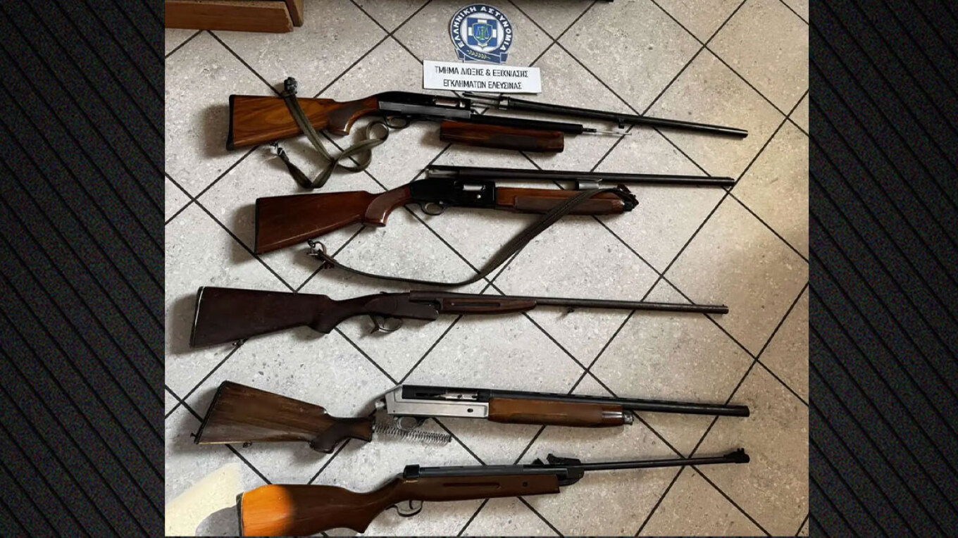 Κατά την έρευνα στο σπίτι του 17χρονου εντοπίστηκε μικρό οπλοστάσιο: πέντε καραμπίνες χωρίς άδεια, αεροβόλο, σιδερογροθιά, μαχαίρια, στιλέτο, σουγιάς, φυσίγγια και μεταλλικά σφαιρίδια. Οι συλληφθέντες οδηγήθηκαν στον Εισαγγελέα.