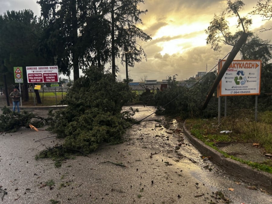 Τα δέντρα έχουν πέσει τόσο στο εσωτερικό του αθλητικού χώρου (ζημιές καταγράφονται στο βοηθητικό γήπεδο ποδοσφαίρου, περιβάλλοντες χώρους και στο στάδιο), ενώ στην ευρύτερη περιοχή κλαδιά και κορμοί δέντρων βρίσκονται εντός των οδών και κάδοι έχουν αναποδογυρίσει.