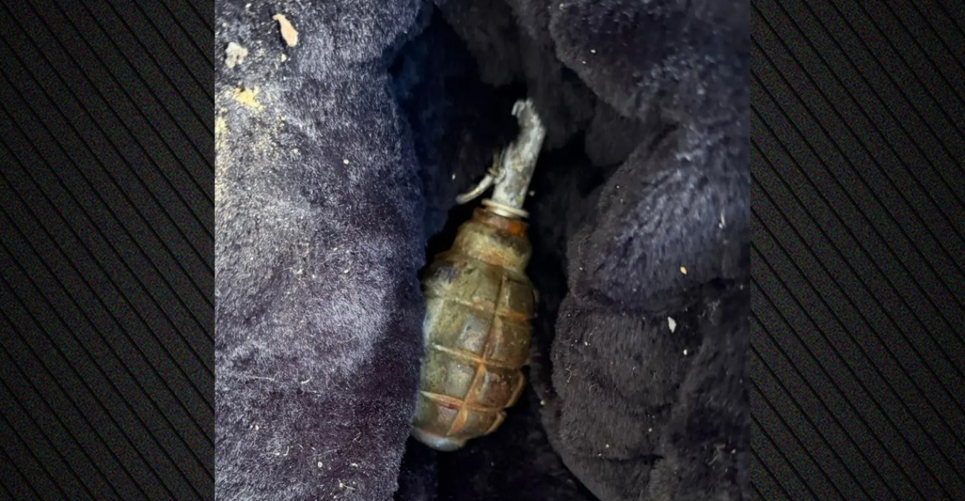 – αμυντική χειροβομβίδα, επιμελώς κρυμμένη στο μπαλκόνι διαμερίσματος,