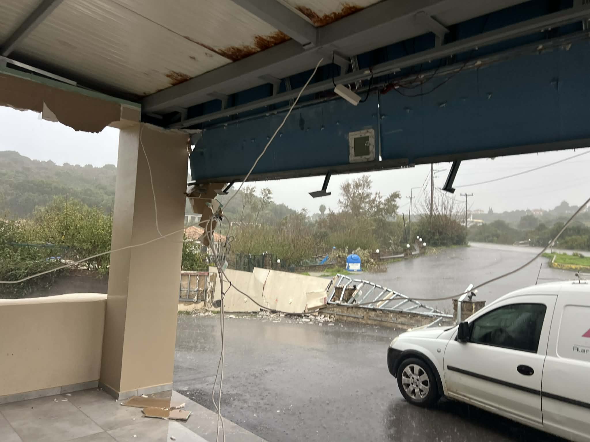 Οι σφοδροί άνεμοι που έπληξαν τη Φοινικούντα ξερίζωσαν στέγες από τα σπίτια, έσπασαν τζαμαρίες επιχειρήσεων, λαμαρίνες έπεσαν στο οδικό δίκτυο και από “θαύμα” δεν κινδύνευσαν οι οδηγοί.