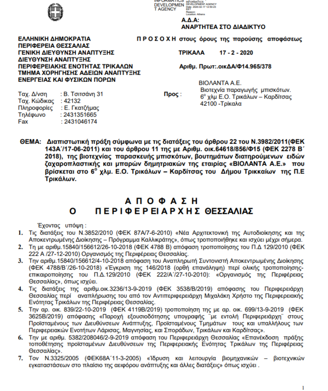 Σε προκαταρκτική έρευνα προχώρησε η εισαγγελία για να αναζητηθούν τυχόν ευθύνες από την επιχείρηση Βιολάντα, καθώς και από φορείς και υπηρεσίες που συμμετείχαν στη διαδικασία αδειοδότησης του εργοστασίου, έπειτα από τη φονική έκρηξη που στοίχισε τη ζωή σε πέντε εργαζομένους. Νέα στοιχεία που έχουν έρθει στο φως αποκαλύπτουν παραλείψεις και παρατυπίες στα έγγραφα και τις άδειες των προηγούμενων ετών.